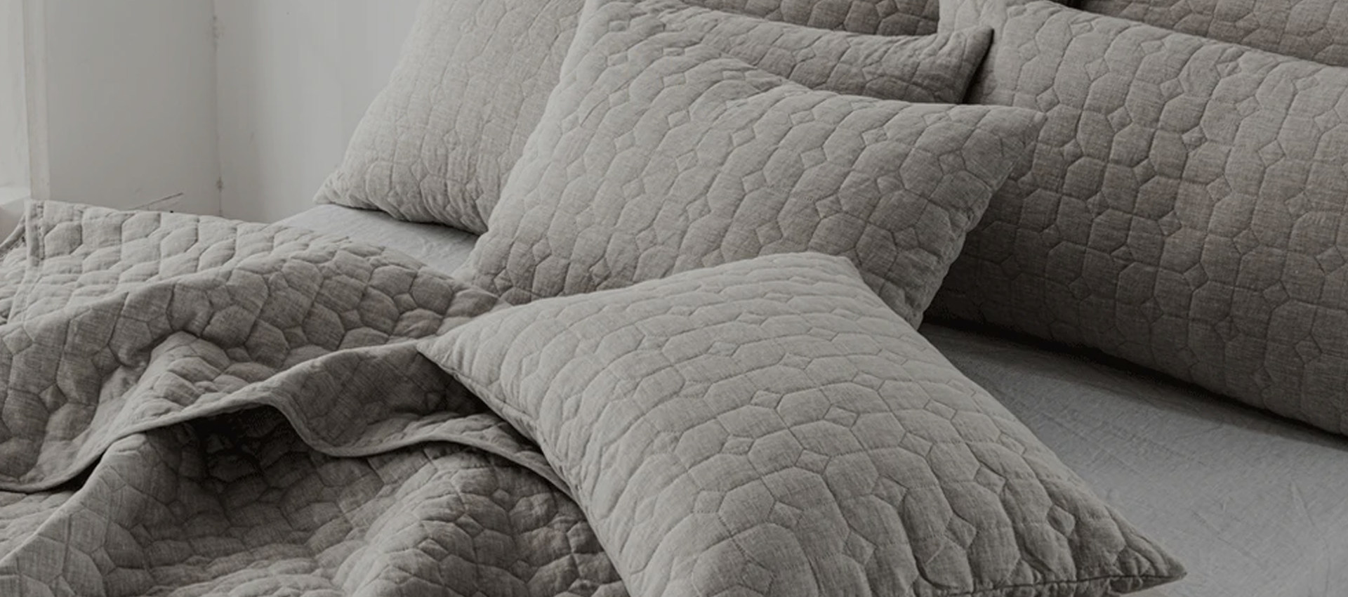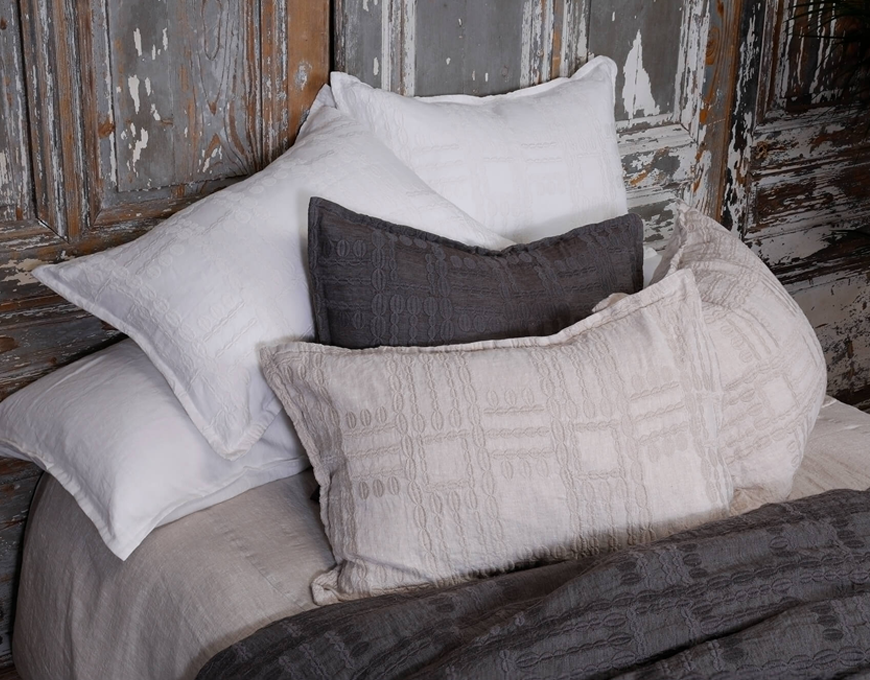 Our geometric carefully embroidered line, has been combined with our textured fine linen, creating a robust look, while subtly keeping it beautifully soft to the touch.